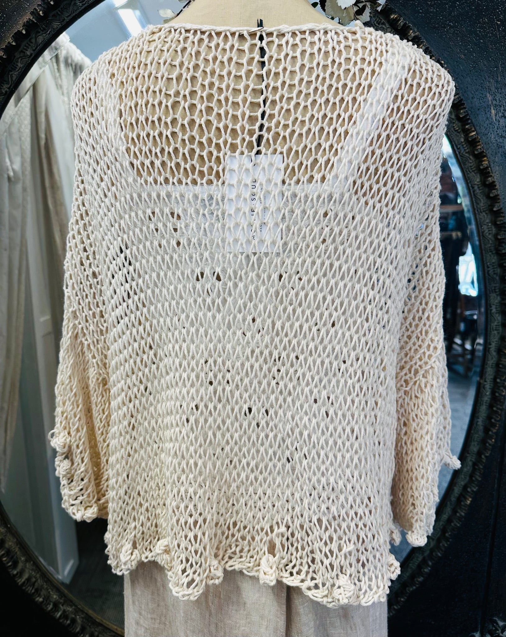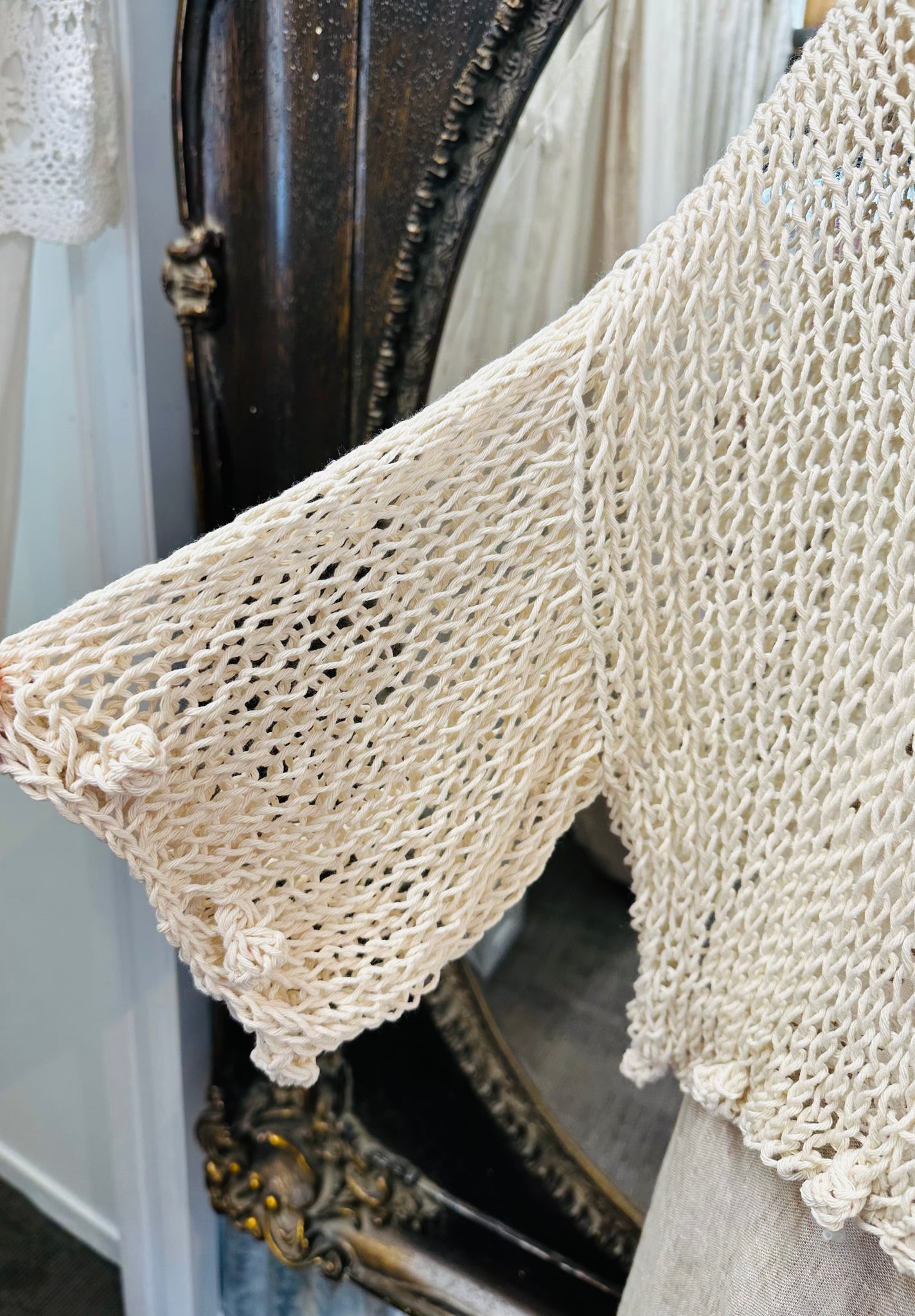 #5938 A new addition this season is the cropped cotton cardy. Featuring delicate bobbles around hems for the look of the season, this hand knitted gem . Pop over a strappy dress or a singlet style top to add a soft layer for your errands or event!