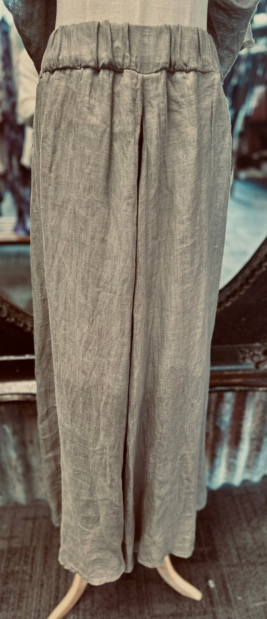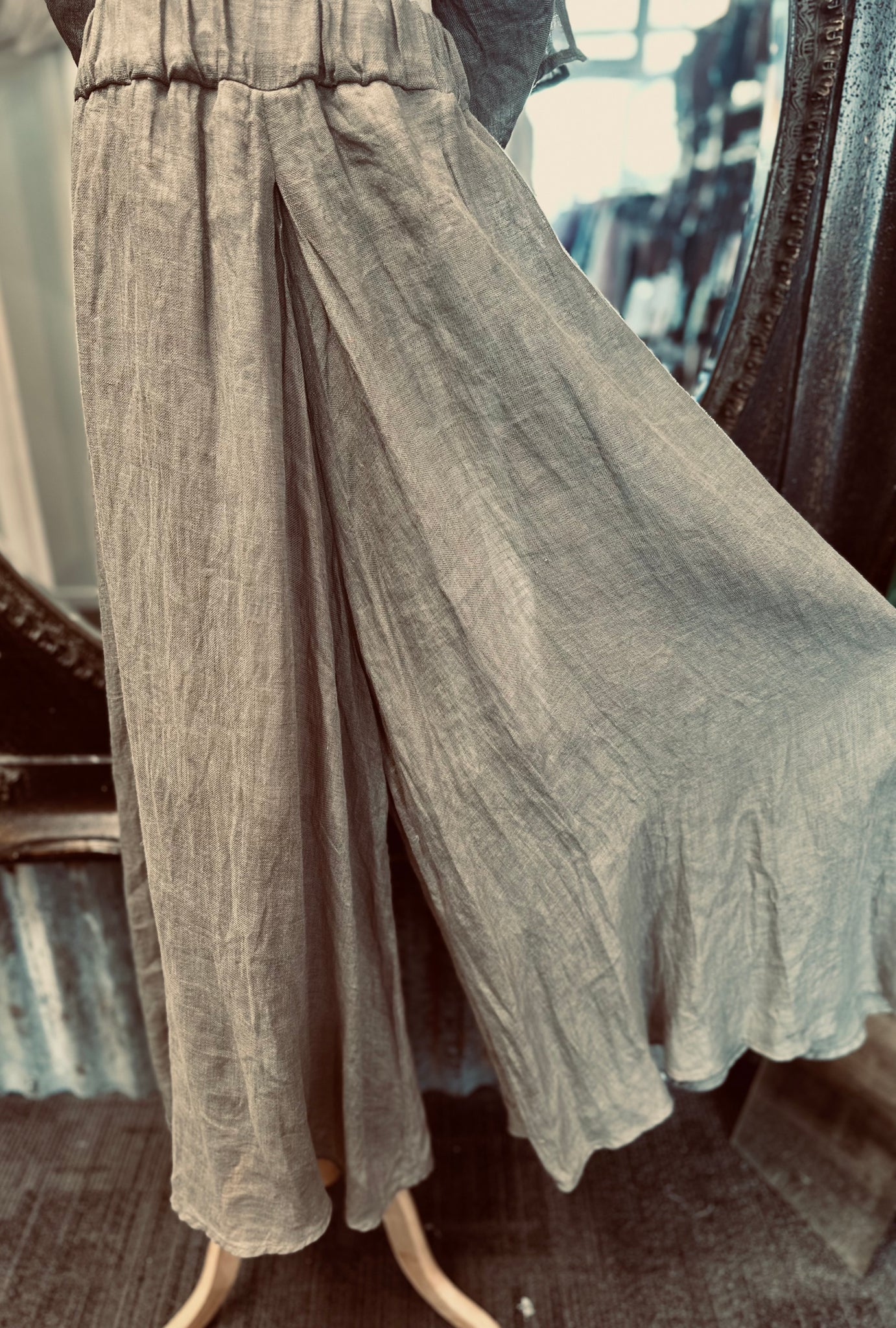#5746 The Palazzo Pants are the latest style to embrace the new season! This soft MOSS shade is perfect for the new season and beyond pairing with our pretty, matching ROSES top. These Palazzo pants are high waisted, lined with French style shorts giving an elegant line and a comfortable fit. Donelle has designed these stylish pants with very soft Rayon keeping it simple with an elastic waist.