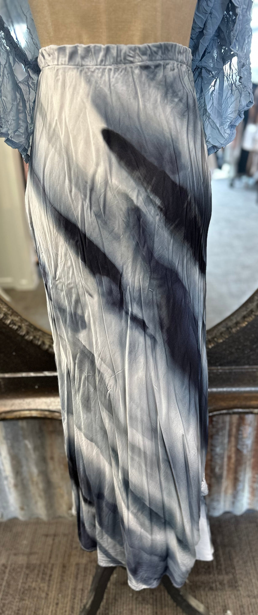 #5749 Our new skirt collection is ready to elevate your wardrobe. Bias cut with an elasticated waistband to ensure soft drape and movement, this design sits comfortably, falling to a flattering high / low hem and just enough side split for a hint of leg.