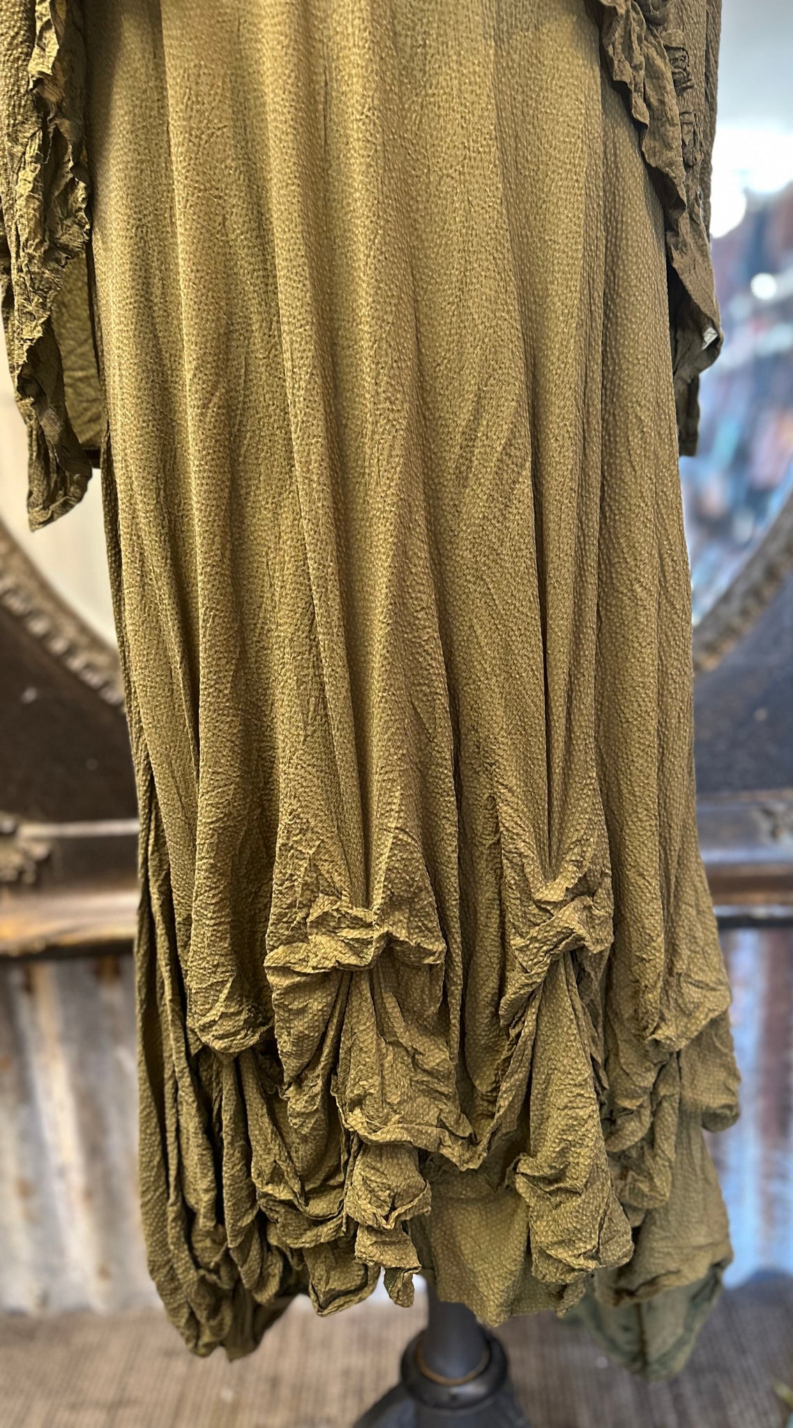 The subtle texture on the fabric enhances the style. Styled here in a rich KHAKI shade to highlight our signature, designer ROOSHE details