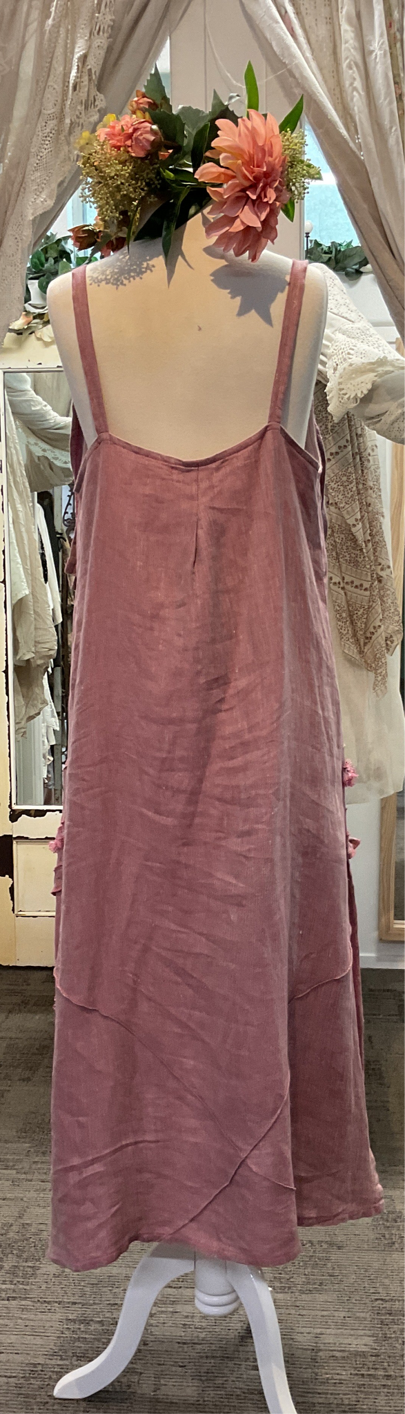 #5897 ‘Tillie’ A beautiful new linen dress to drape yourself in with soft shoulder ties giving a summer vibe at all your event. Lux linen lined to the hips in a soft cotton. Raw edging pattern with pretty frills and front seam add interest. High low hem and side splits with just enough rooshing designed by Donelle for the new seasons outings.